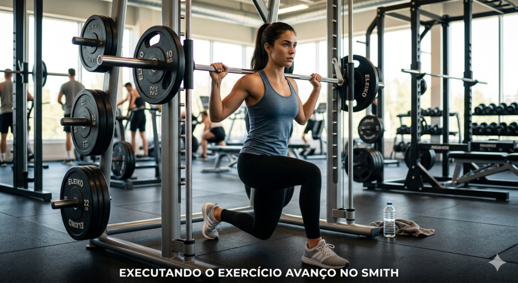 5. Avanço com Halteres/Smith Machine — pernas e glúteos em movimento