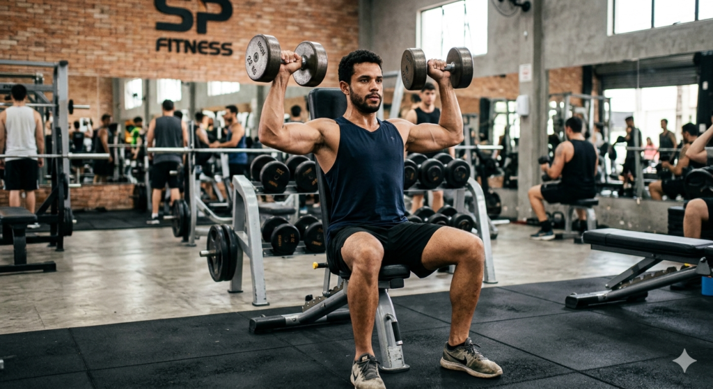 7. Desenvolvimento de Ombros com Halteres — a montanha dos ombros